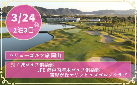 【3月24日出発】岡山の名門ゴルフ場を巡る♪趣の違う3コースを制覇する☆バリューゴルフ旅岡山